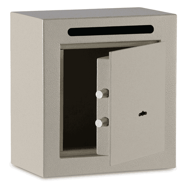 La caja fuerte con buzón recaudador especialmente diseñado para transporte y recaudación en movimiento. Su cerradura doble paleta con 2 pasadores de 16mm ofrece una seguridad superior para el manejo de efectivo en vehículos de cobro, El espesor de puerta 4,75 mm y gabinete de 1,6 mm. Peso de 5,20 kg. Dimensiones compactas para instalación en espacios reducidos.