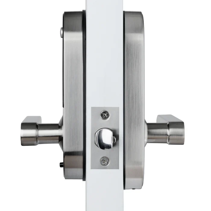 La seguridad estructural está reforzada por un sistema de bloqueo automático de manija y una alarma sonora integrada que detecta intentos de vandalismo o manipulación. Pensada para la máxima comodidad del usuario, cuenta con una pantalla táctil retroiluminada, un menú de configuración guiado por voz y un puerto de emergencia para alimentación externa. Su función de privacidad interior garantiza un control absoluto sobre el recinto, impidiendo cualquier apertura externa no autorizada en momentos de descanso o reuniones privadas.