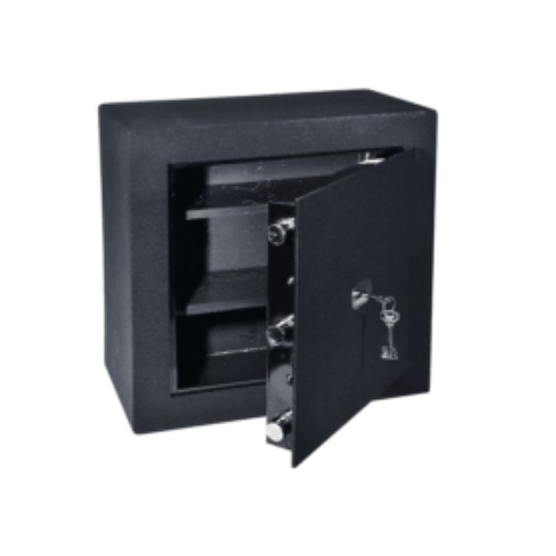 Esta caja fuerte de acero sólido ofrece un resguardo confiable mediante una cerradura mecánica de alta seguridad y un estante interior regulable. Su diseño robusto con acabado anticorrosivo permite un anclaje firme a pared o piso para proteger efectivo y documentos valiosos. Es un modelo clásico, reconocido por su durabilidad y facilidad de uso tanto en hogares como en comercios.