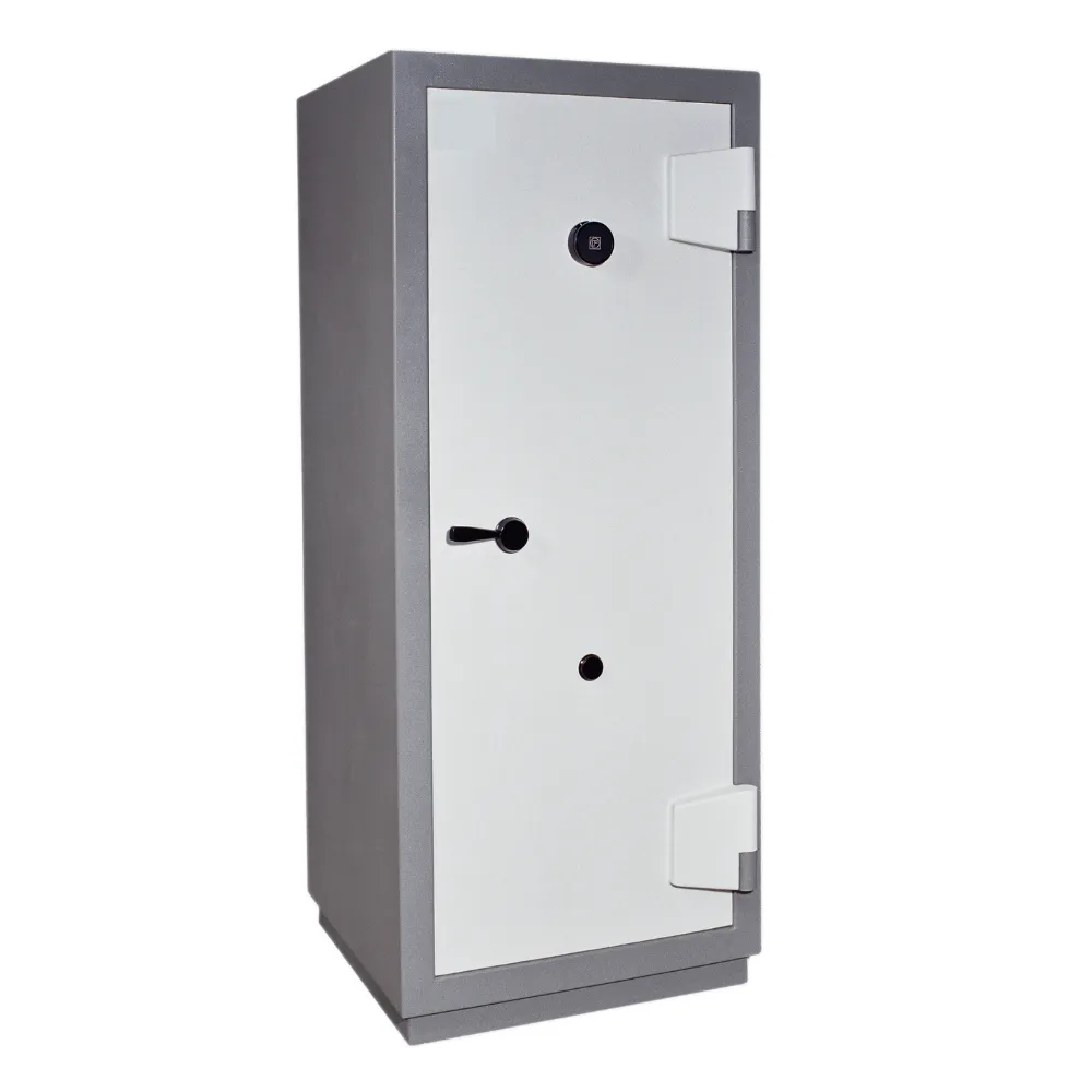 La caja fuerte empresarial de 165cm de alto, representa el estándar máximo de protección para instituciones financieras y grandes comercios, ofreciendo una estructura blindada de 800 kg que garantiza una resistencia infranqueable ante intentos de robo o manipulación física. Su sistema de acceso de grado bancario combina la tecnología de un teclado digital con la seguridad de una cerradura de llave, permitiendo un control de apertura riguroso y confiable para el resguardo de activos de gran valor en bóvedas o salas de seguridad.