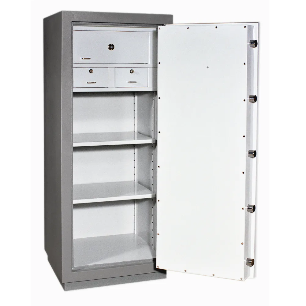 En su interior está diseñada para una organización superior, integrando un tesoro independiente para valores críticos, además de un cajón, dos tesoros y dos estantes que optimizan la distribución de grandes volúmenes de efectivo y documentación.